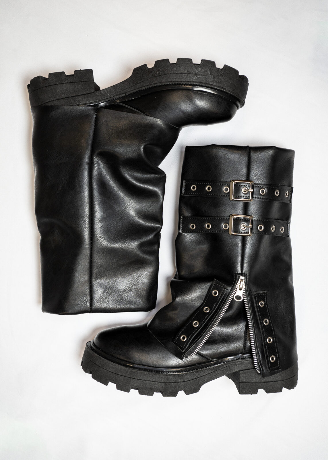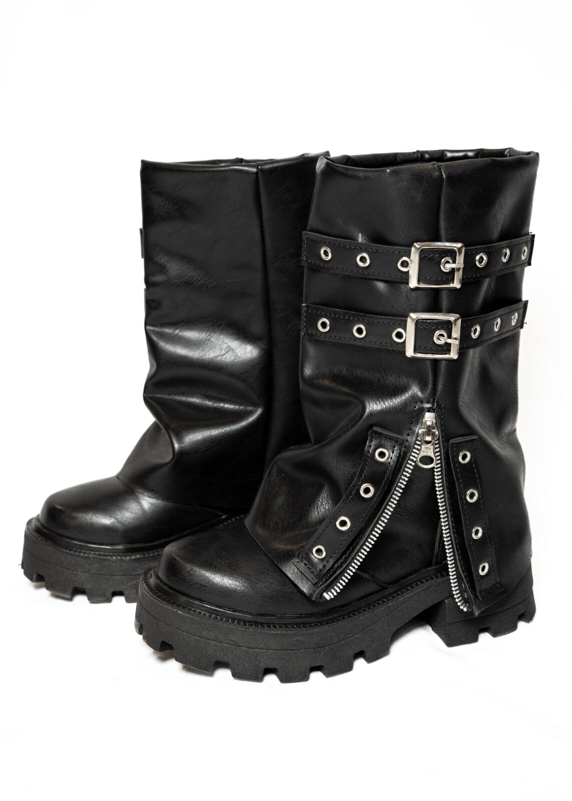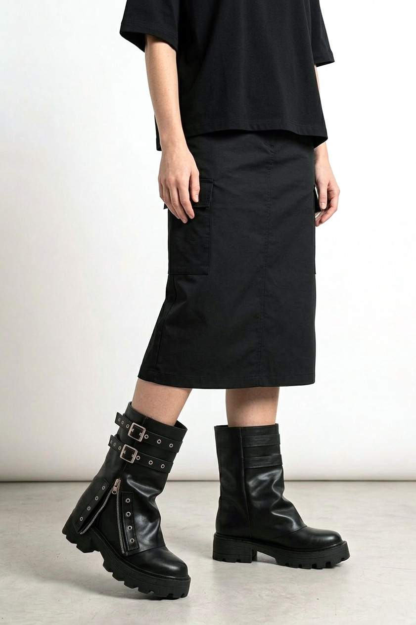 Diseño: Doble ajuste de hebillas reforzadas y ojalillos metálicos que definen su ADN rockero.